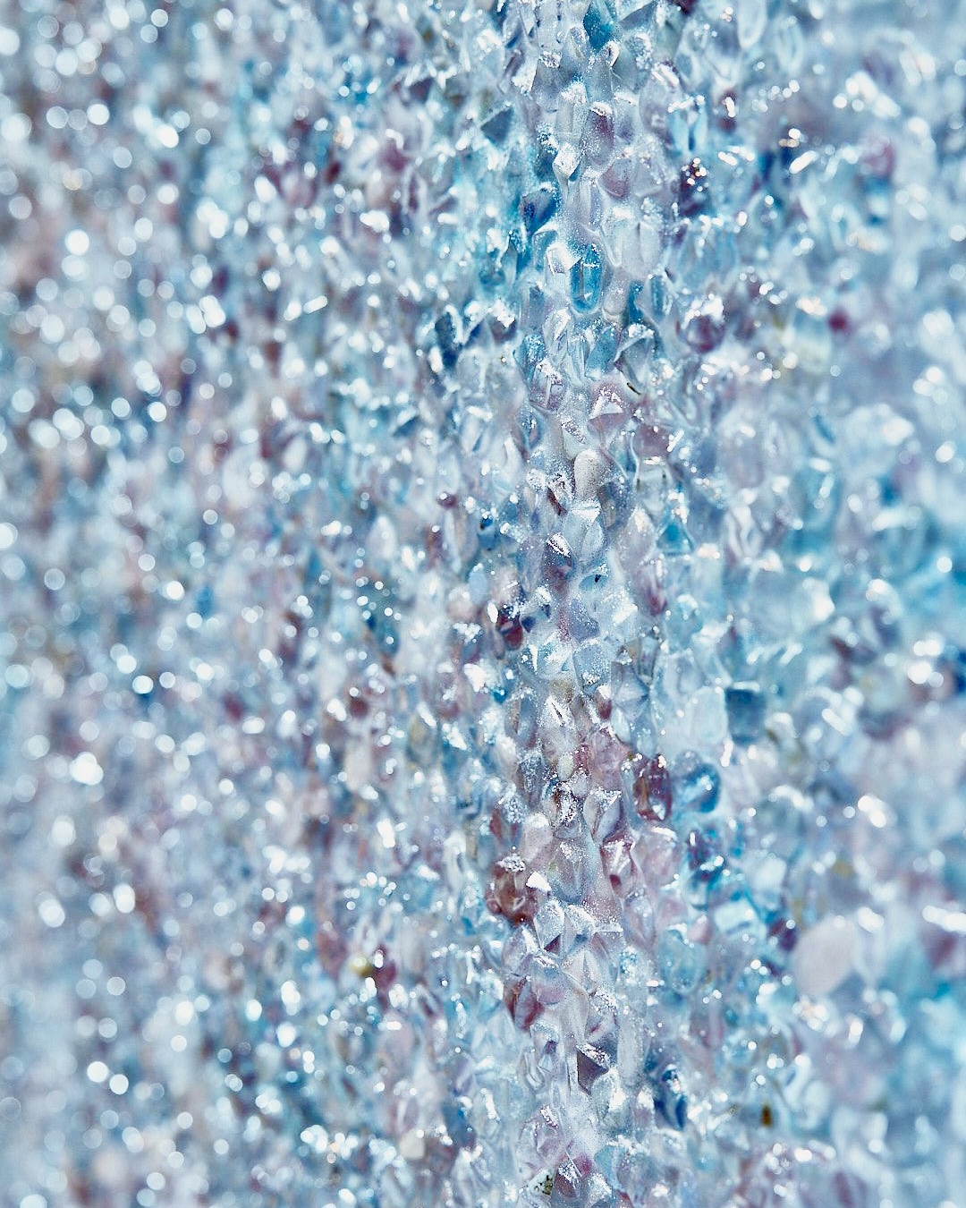 The painted sculptures she produces capture the light and shadows cast by natural rock surfaces and reproduce their momentary beauty in three dimensions using different materials. The use of lighting gives the sculptures a variety of expressions and adds depth to the space.