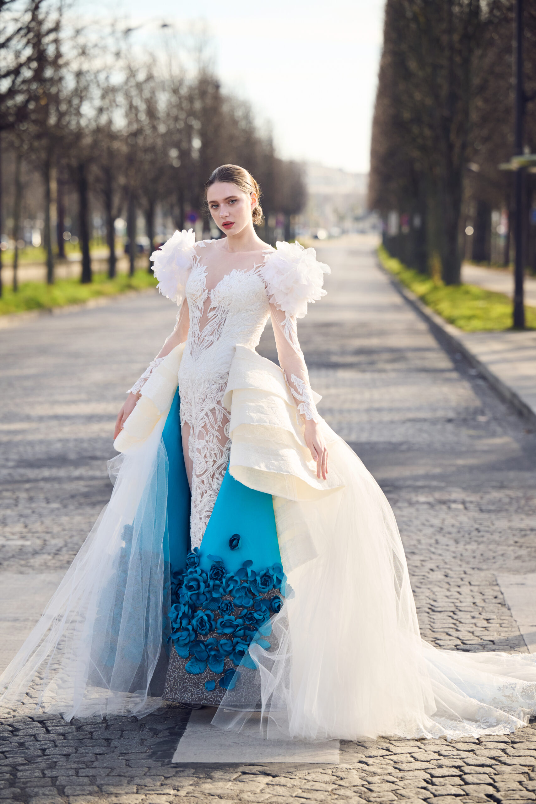 These dresses combine the boldness of an art piece with refined elegance, highlighting the bride’s beauty to its fullest.